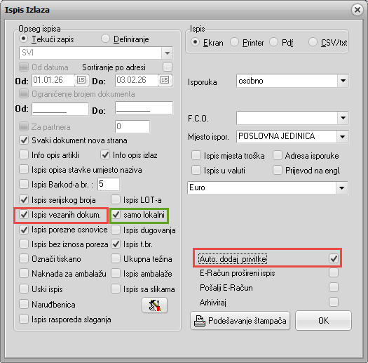Mogućnost automatskog slanja vezanih dokumenata s eračunom