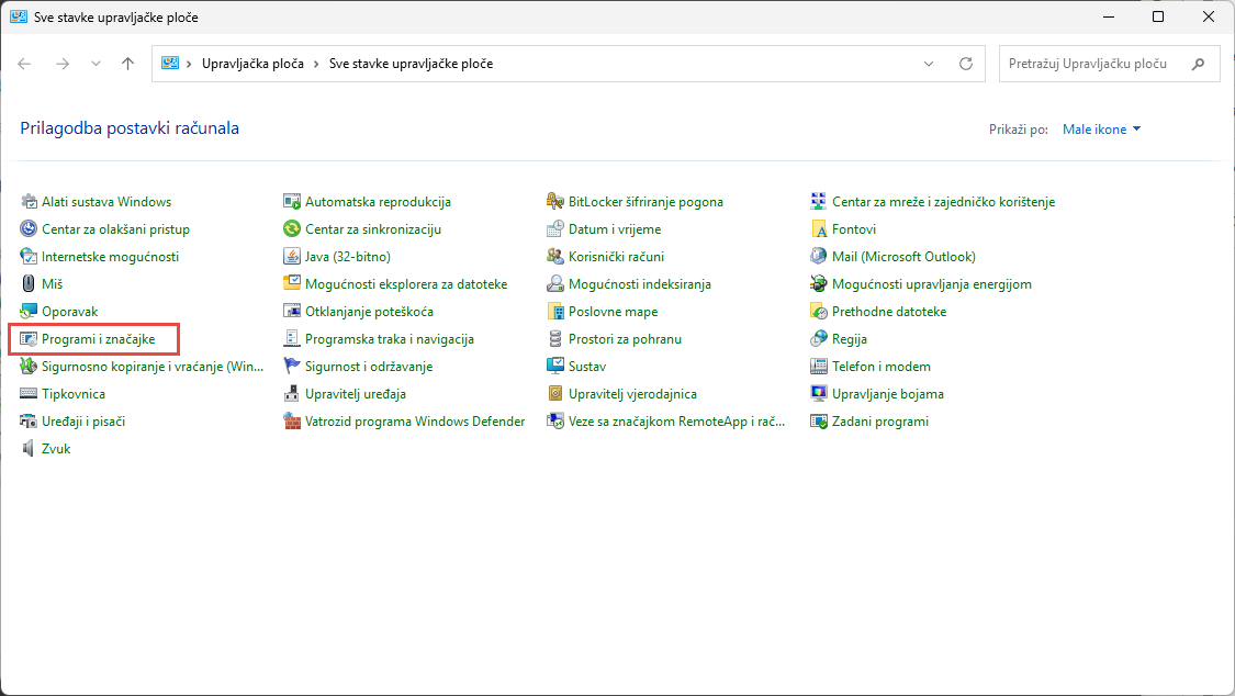 DRUGI korak - pristupite Programima i značajkama